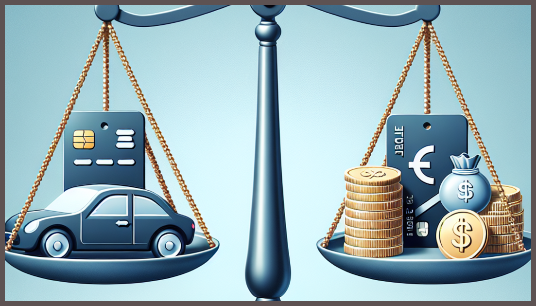 Scales balancing car, money, and alternatives, representing insurance choices.